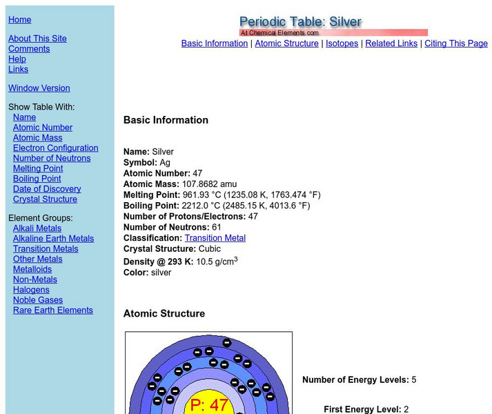 This interactive periodic table provides information about each of the elements. This is a very comprehensive site.