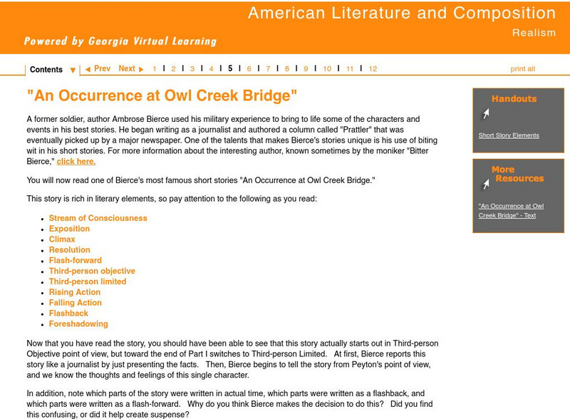 Ga Virtual Learning: Realism:"an Occurrence at Owl Creek Bridge" Ambrose Bierce