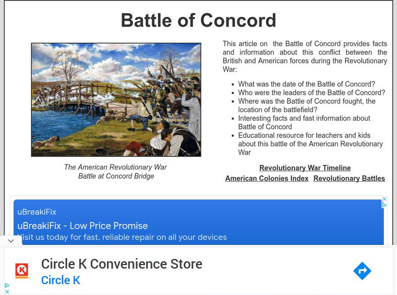 Learn about this Revolutionary War battle that took place April 19, 1775, between Great Britain and its thirteen colonies in North America that ended in a victory for the American colonists.