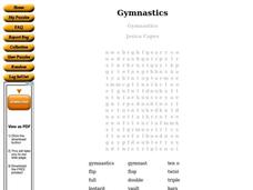 This word search includes 30 gymnastics terms that may help your class learn relevant terms.