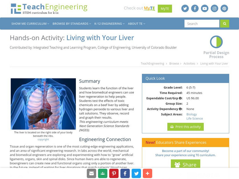 Students learn the function of the liver and how biomedical engineers can use liver regeneration to help people. Students test the effects of chemical toxins on a beef liver and how salt changes the liver's ability to break down these...