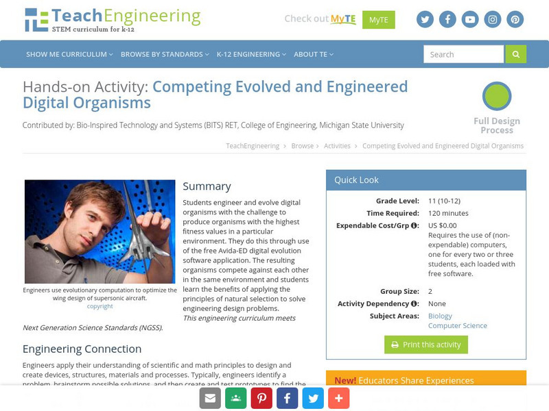 Teach Engineering: Competing Evolved & Engineered Digital Organisms