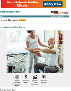This career profile from Science Buddies explains what a physical therapist does. Find out the nature of the work, the work environment, the education requirements, and what a physical therapist's daily work looks like. Included are...