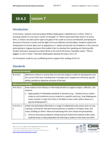 What do readers discover about a character within the first few sections of a text? Pupils begin reading Shakespeare's Macbeth and analyze the language in the first few scenes of the play. They also demonstrate understanding with a Quick...