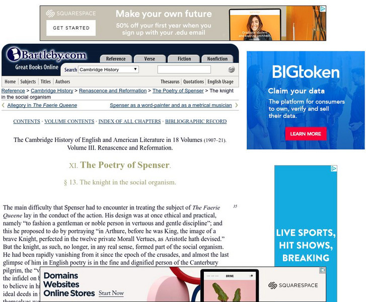 Discussion of the knight in the social organism of Spenser's poem "The Faerie Queene." From The Cambridge History of English and American Literature.