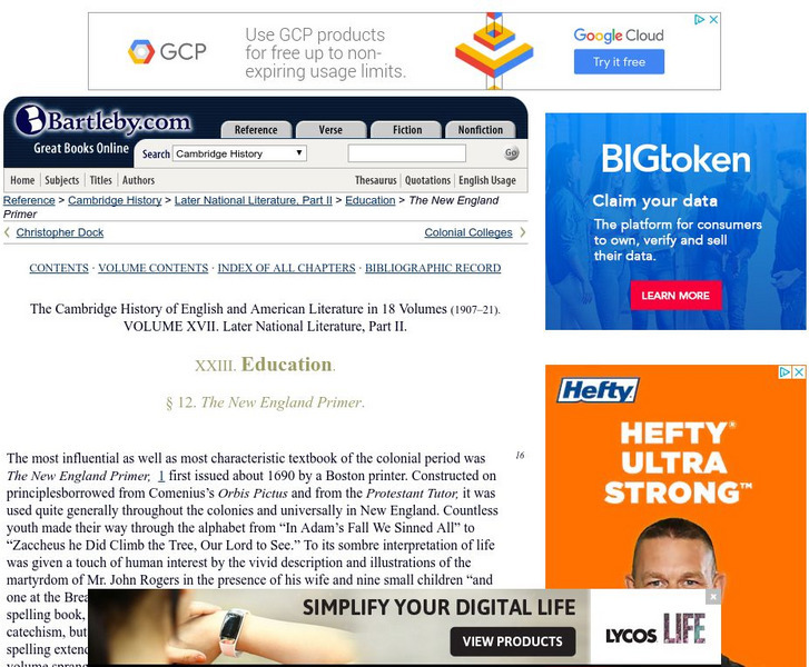 Bartleby.com: Cambridge History of Eng and Am Lit: New England Primer