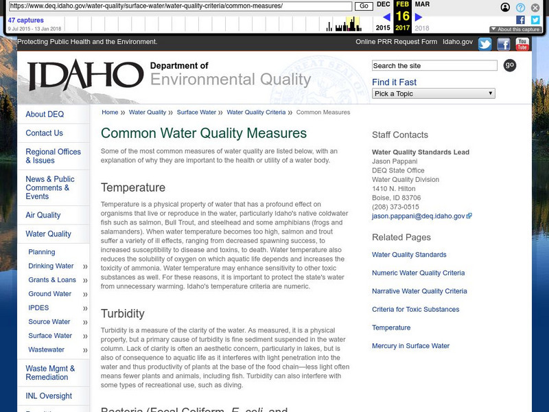 Idaho Department of Environmental Quality: Common Water Quality Measures