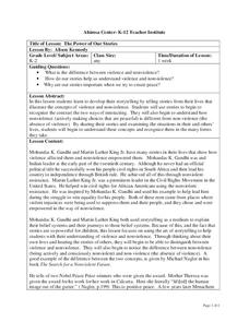 Students compare violence to nonviolence. in this peace lesson, students tell stories from their own life that show the difference between violence and nonviolence. They listen to examples of Gandhi and Martin Luther King.