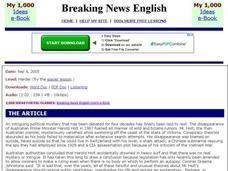 In this missing Australian Prime Minister worksheet, students read the article, answer true and false questions, complete synonym matching, complete phrase matching, complete a gap fill, answer short answer questions, answer discussion...