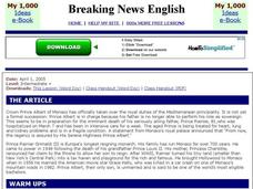 In this Monaco worksheet, students read the article, answer true and false questions, complete synonym matching, complete phrase matching, complete a gap fill, answer short answer questions, answer discussion questions, write, and more...