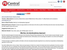 Students are encouraged to do their best on the mile run portion of the fitness test. They also gain knowledge about fitness in other academic areas of the school too. In science, the class records resting pulse rates, in math, charts...