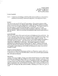 Students understand the basic political events of the French Revolution, broken down into four stages, and the shifts of power during each stage. They examine how the members of the Third Estate gained not only political but also...