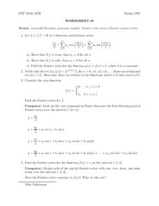 In this math worksheet, students determine the solutions of the functions using the Fourier series. They also use computer to create some graphs for functions.