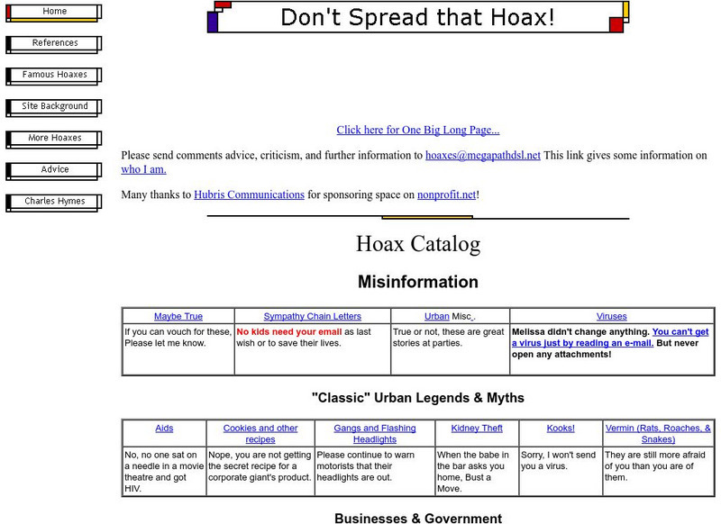 This site is a well thought out presentation of why you might want to dig deeper before sending that "Urgent," sounding message and spreading a junk-mail virus.