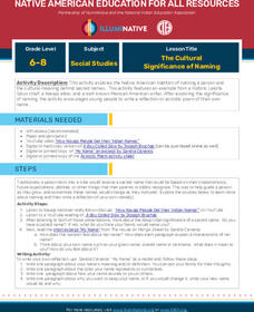 The Navajo would disagree with Shakespeare that the naming of things is irrelevant. Navajo people have to earn their names. Middle schoolers learn about the cultural significance of Navajo names in a lesson that uses a video and reading...