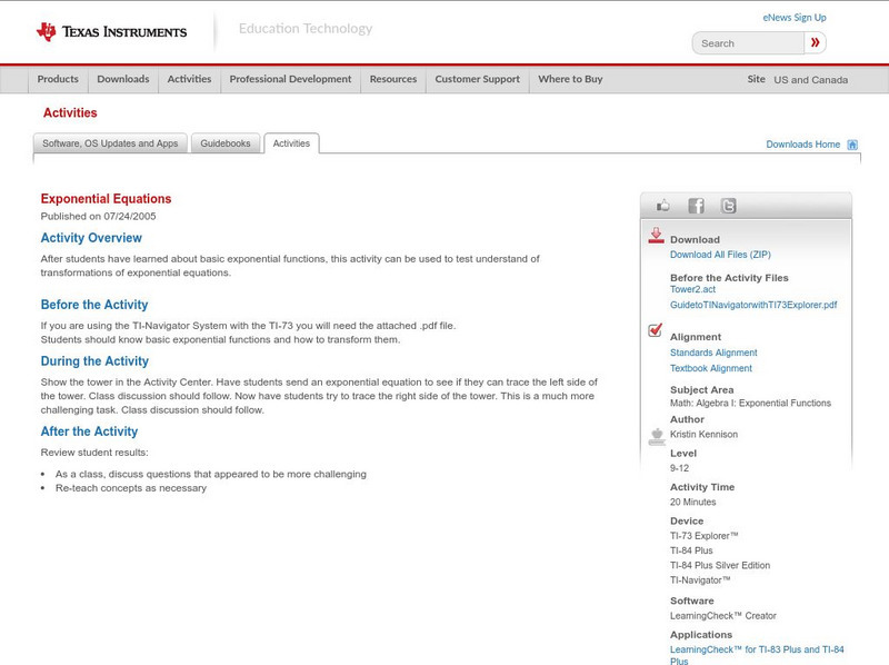 [Free Registration/Login may be required to access all resource tools.] This lesson covers solving exponential equations. Students examine guided notes, review guided practice and attempt practice problems.