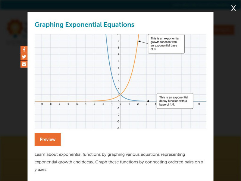 Learn about exponential functions by graphing various equations representing exponential growth and decay. Graph these functions by connecting ordered pairs on x-y axes.