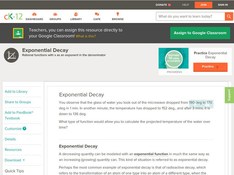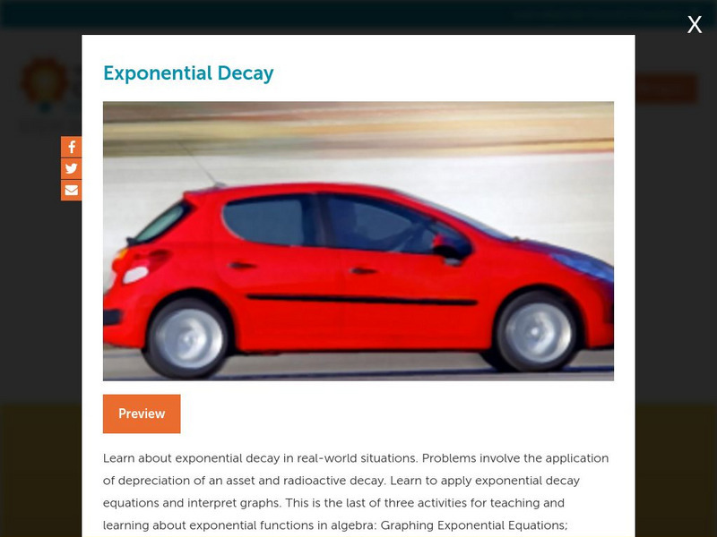 [Free Registration/Login may be required to access all resource tools.] Developing exponential decay models with Algebra