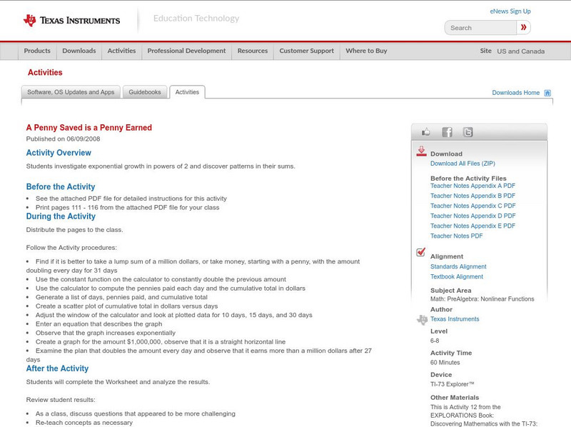 [Free Registration/Login may be required to access all resource tools.] Evaluating and solving basic exponential functions, introduction to ''e''.