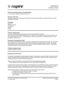 Students analyze function graphs. In this Algebra II/Pre-calculus activity, students investigate the graph of a function as they determine to which family of functions it belongs, determine the parent function and describe the...