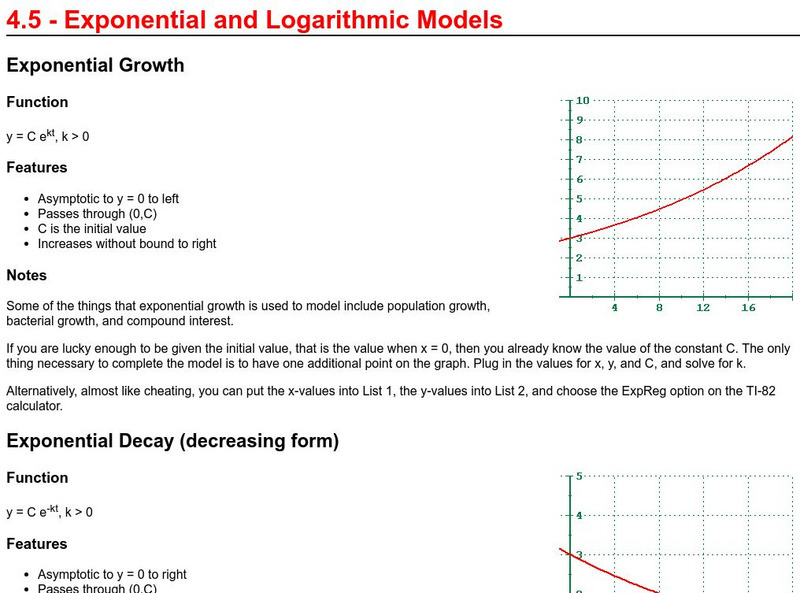 Students learn about exponential functions, logarithmic functions, and applications of exponential functions. The tutorial includes class notes, calculator tips, examples, and practice problems with solutions. The teacher resource...