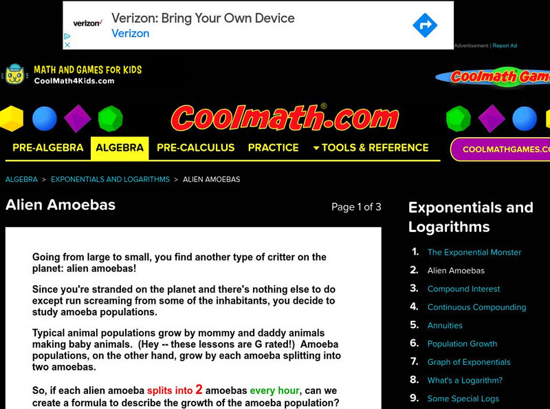 Coolmath: Exponentials & Logarithms Alien Amoebas