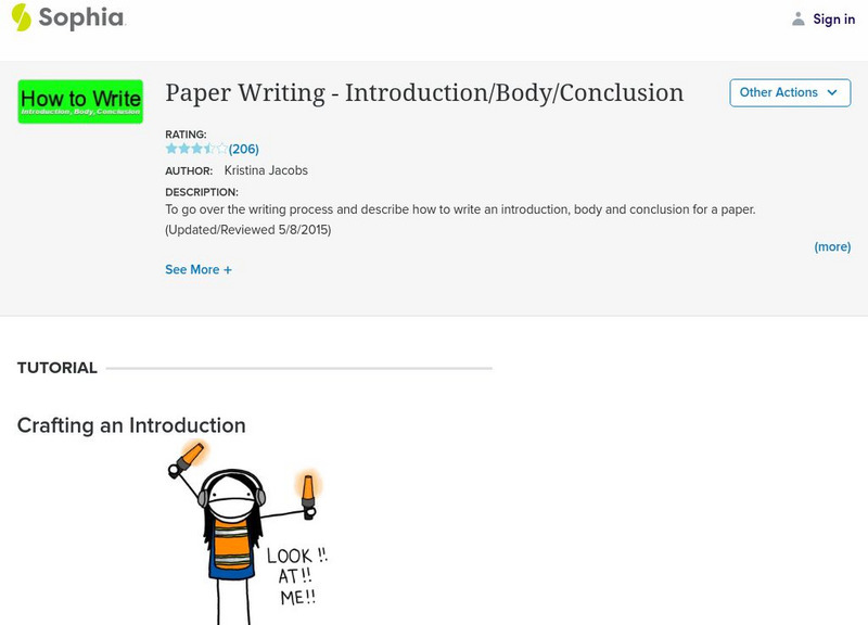 This site shows students how to write an introduction, body, and conclusion to create a complete paper. Students see examples of two different types of introductions, get ideas for attention grabbers, gain understanding of the type of...