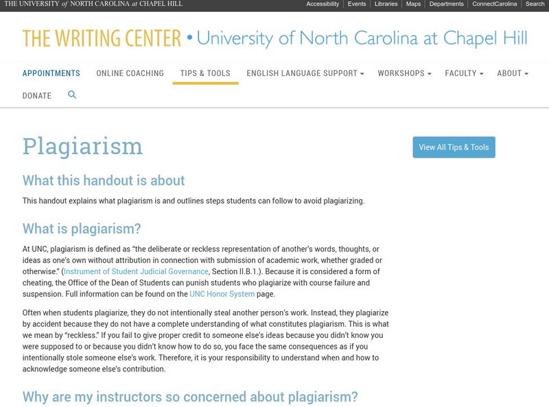 The documents and videos collected here touch on most aspects of good academci writing, and all aspects of the writing process. Students can choose from the many topics to address the specific skill or concept they need to master.