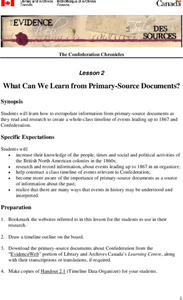 Students extrapolate information from primary-source documents. They read and research to create a whole-class timeline of events leading up to 1867 and Confederation.