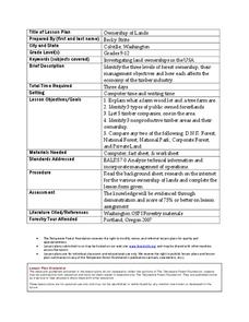 Students study the levels of forest ownership and how each are managed. In this land ownership lesson students research timber companies and complete a writing assignment.