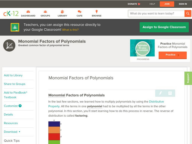 Ck 12: Algebra: Monomial Factors of Polynomials