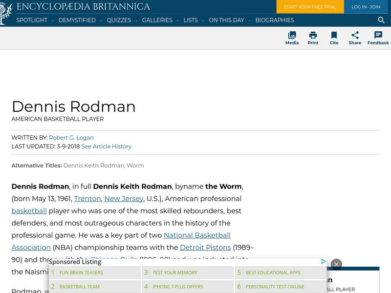 Biographical account of Dennis Rodman, an American professional basketball player who was one of the most skilled rebounders, best defenders, and most outrageous characters in the history of the professional game. He was inducted into...