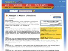 Students complete a project about Ancient civilizations. In this ancient civilizations lesson, students explore the contributions made by ancient civilizations and research the scientific and technological achievements of ancient...