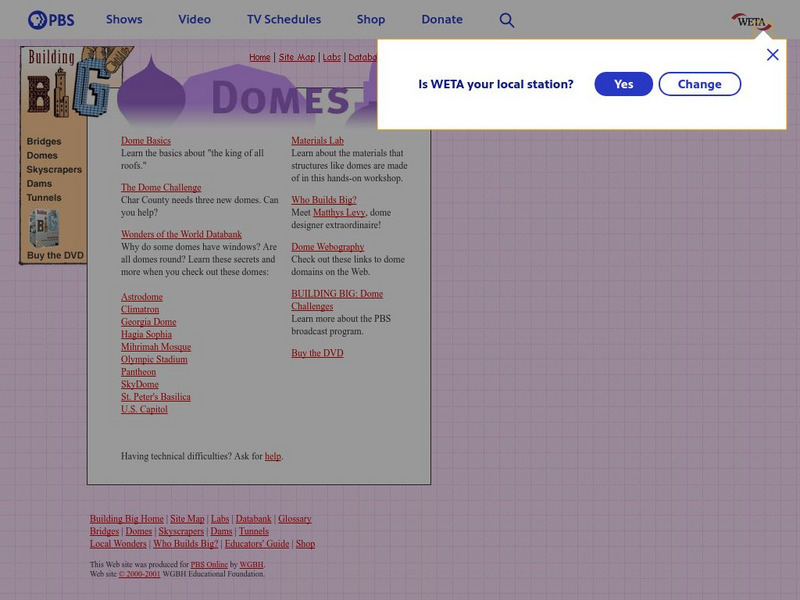 A collection of resources about domes that includes basic facts about domes, challenges faced by dome builders, famous domes from around the world, and a lab that helps you understand different kinds of materials used to construct domes....