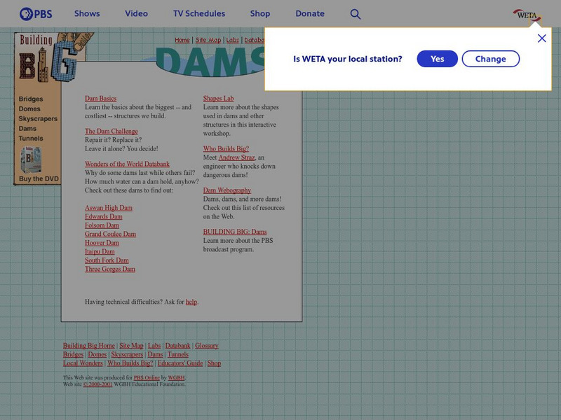 A collection of resources about dams that includes basic facts about dams, challenges faced by dam builders, famous dams from around the world, and a lab that helps you understand different kinds of shapes used to construct dams. Also...