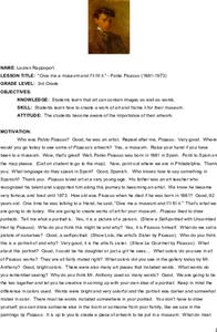 Third graders view pieces of Pablo Picasso's art. They discover art can have images and words to express meaning. They create their own piece of art and share with the class.