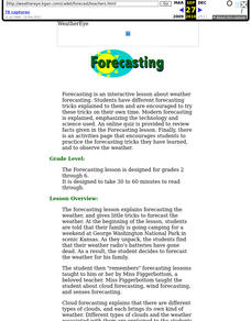 Learners research how to forecast the weather by observing cloud formations and wind patterns. They research modern means of weather forecasting, complete a quiz and an activity page designed to let them try out new forecasting skills...
