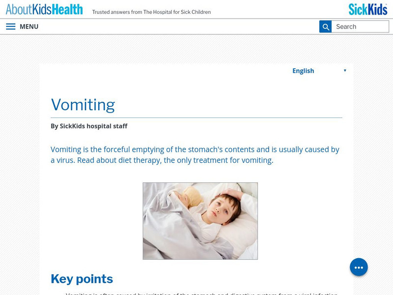 Presents a featured article on vomiting including information on what it is, causes, treatment, and associated problems.