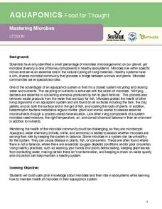 Small but mighty! Learners explore the role of microbes in a healthy ecosystem. An engaging lesson asks pupils to design an aquaponics system that demonstrates that healthy microbes are necessary to maintain the ecosystem.