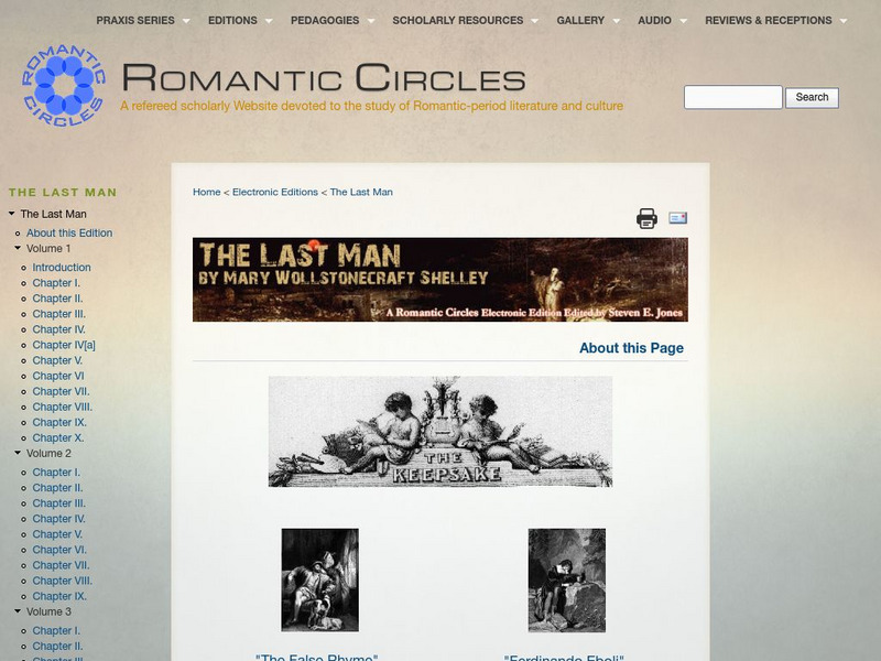 This index page links to the full text of four Mary Wollstonecraft Shelly short stories, including "The False Rhyme," "Ferdinando Eboli," "The Mourner," and "The Mortal Immortal."