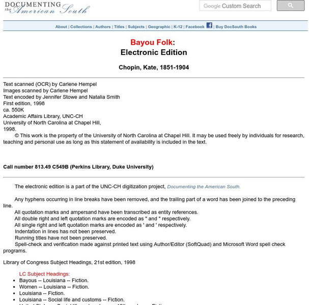 Documenting the Amer. South: Kate Chopin: Bayou Folk