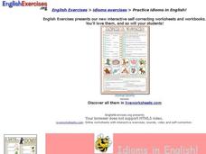 In this idioms worksheet, students fill in the blanks to idioms with nouns and compare idioms. Students complete 30 problems total.