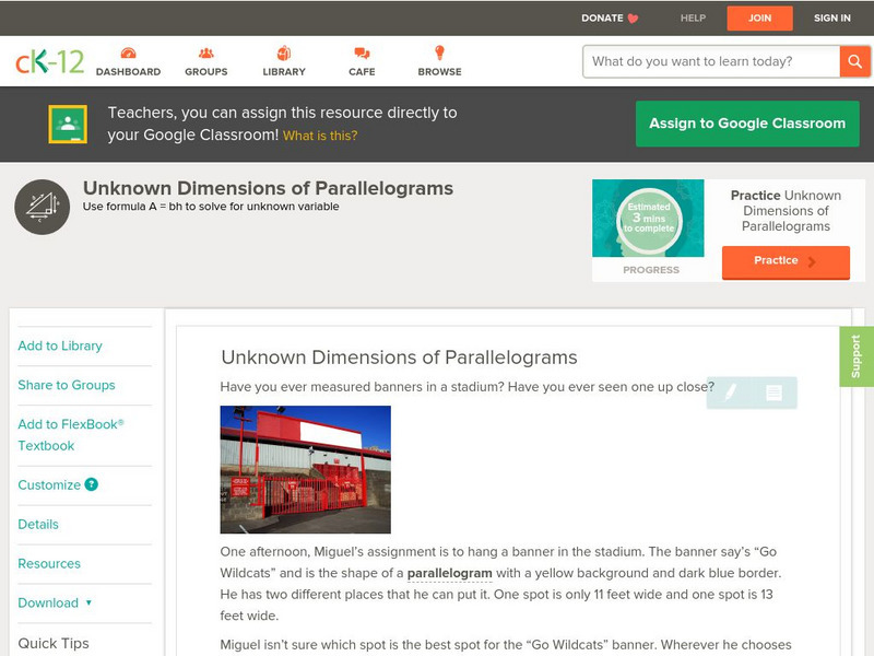 Ck 12: Unknown Dimensions of Parallelograms Grades 6 7