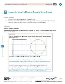 Young geometers explore the concept of circumference and area of circles. They discuss what information is needed to find circumference and area. The resource employs several instructional methods: Frayer Model for Vocabulary, literature...