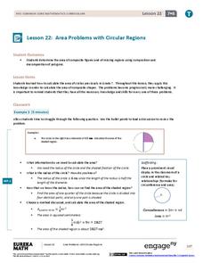 Uncover strategies for finding areas of composite figures. The 23rd lesson in a 29-part module has young mathematicians decompose figures to find total area. Figures decompose to rectangles and circular regions.