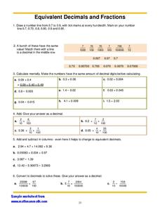 For this equivalent fractions worksheet, students simplify fractions to their lowest terms. They identify equivalent fractions. This two-page worksheet contains four multi-step problems.