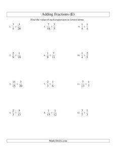 For this fraction addition worksheet, students review the steps for finding the sums when adding fractions with unlike denominators. They find equivalent fractions using the least common denominator, add, and reduce as necessary. They...