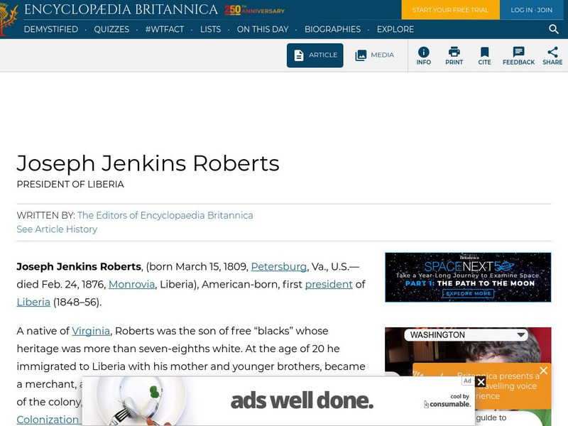 Encyclopedia Britannica: Joseph Jenkins Roberts