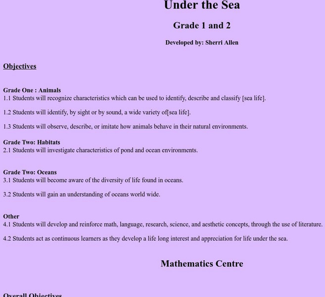 University of Regina: Math Central: Under the Sea: Grade 1 and 2