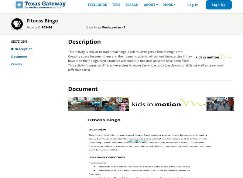 Texas Gateway: Kids in Motion: Fitness Bingo